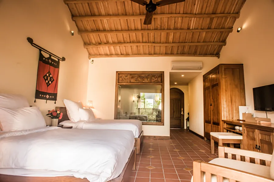Với thiết kế tái hiện hoàn hảo không gian nhà ba gian xưa với những mái đà được điêu khắc tỉ mỉ, những mảng tường gạch mang hơi thở thời gian và các góc trang trí chỉn chu quanh phòng, không gian của gian phòng Deluxe như bày ra trước mắt những vị khách ghé …