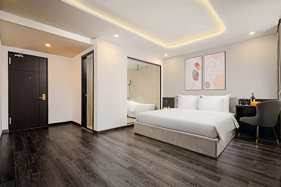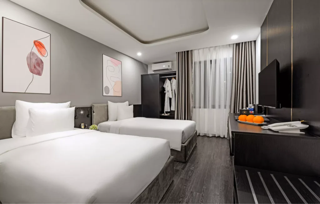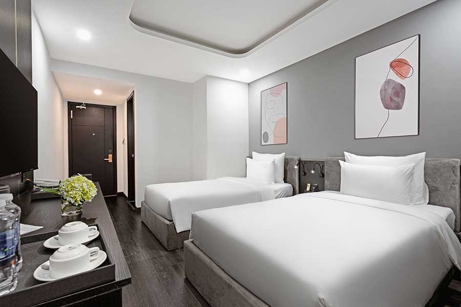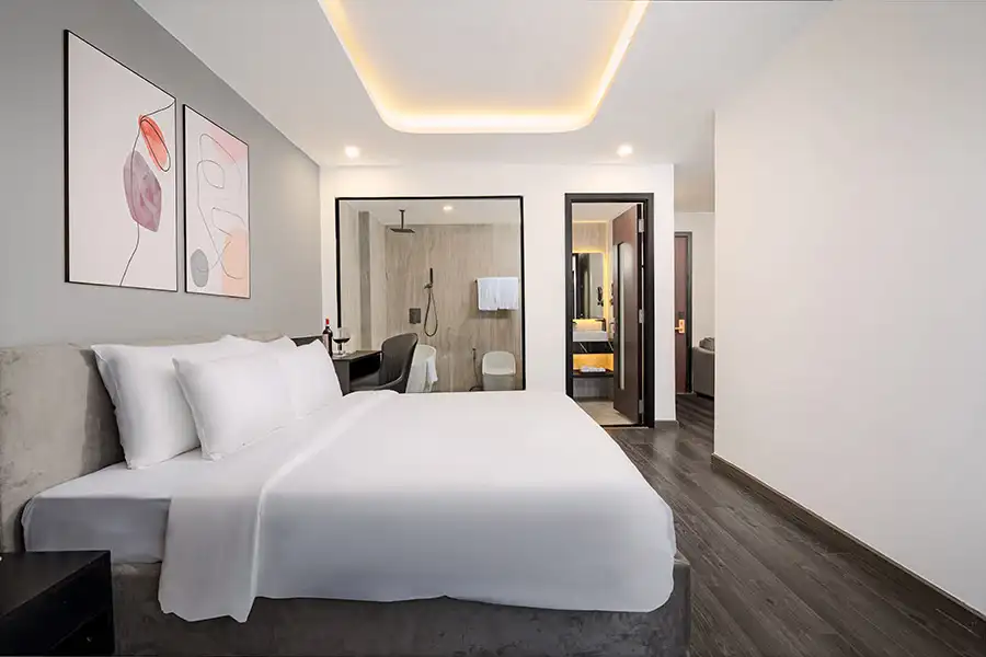 Mỗi phòng tại khách sạn đều được thiết kế theo phong cách tối giản nhưng không kém phần ấm cúng và sang trọng. Các trang thiết bị trong phòng đều là những thương hiệu nổi tiếng, đảm bảo chất lượng và sự thoải mái cho du khách. Những tiện nghi như giường ngủ thoải mái, TV màn hình phẳng, minibar, điều hòa không khí, và đặc biệt là khu vực phòng tắm rộng rãi với bồn tắm và vòi sen riêng biệt, sẽ mang đến cho du khách cảm giác thư giãn tuyệt đối.