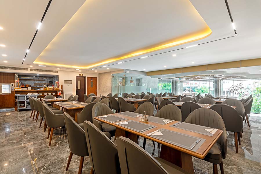 Nhà hàng và quầy bar: Nhà hàng của Mercy Emerald Đà Nẵng mang đến những món ăn đa dạng, từ ẩm thực Việt Nam truyền thống đến các món ăn quốc tế. Với không gian sang trọng, thực đơn phong phú và đội ngũ nhân viên chuyên nghiệp, đây là nơi lý tưởng để du khách thưởng thức bữa ăn trong không khí thoải mái. Bên cạnh đó, quầy bar tại sảnh khách sạn cũng phục vụ các loại đồ uống, từ cà phê đến rượu vang và cocktail, mang đến không gian thư giãn lý tưởng cho những buổi tối tại Đà Nẵng.