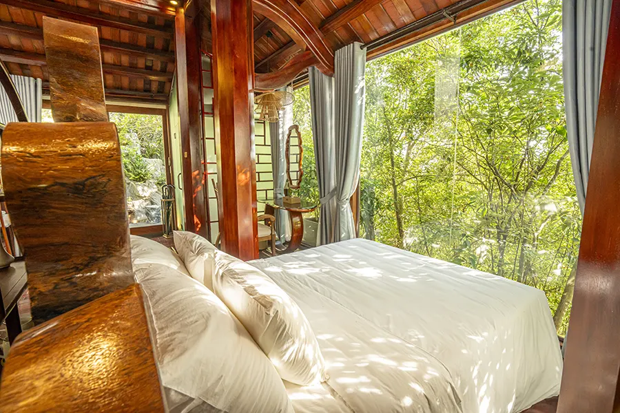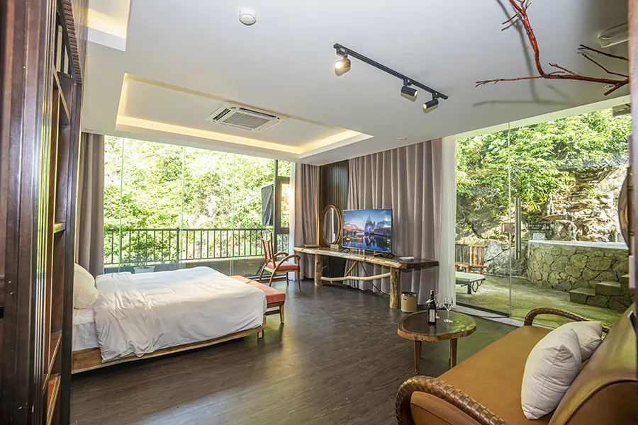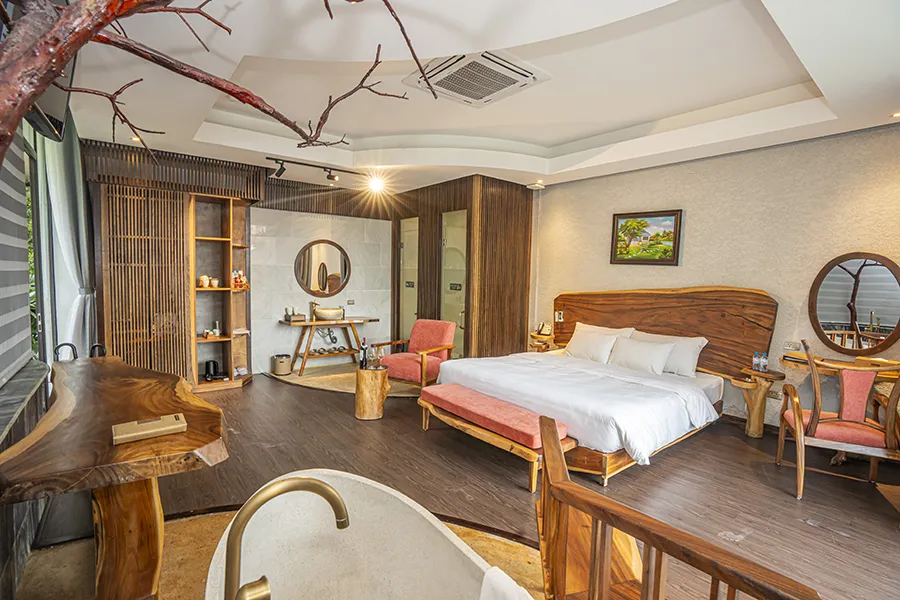 Giường ngủ tròn Có tắm khoáng tại phòng Khách tối đa: 2 người lớn + 1 trẻ em View hướng vườn + Hướng núi