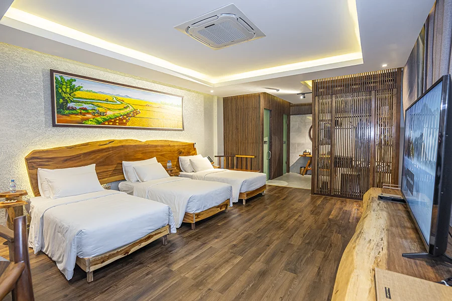 Minawa Kenhga Resort & Spa Ninh Bình là một khu nghỉ dưỡng cao cấp nằm tại một trong những vùng đất đẹp nhất của tỉnh Ninh Bình, nơi được thiên nhiên ban tặng với cảnh quan hùng vĩ của núi non, hang động và dòng sông xanh. Nằm cách các danh thắng nổi tiếng như Tràng An, Tam Cốc, Chùa Bái Đính chỉ một quãng đường ngắn, Minawa Kenhga Resort & Spa không chỉ là nơi nghỉ ngơi lý tưởng mà còn là điểm đến tuyệt vời cho những ai muốn khám phá vẻ đẹp nguyên sơ của Ninh Bình. Vị trí và Không gian Minawa Kenhga Resort & Spa tọa lạc tại một vị trí đắc địa, được bao quanh bởi cảnh sắc thiên nhiên tuyệt đẹp của núi đá vôi, cánh đồng lúa xanh mướt và sông ngòi thơ mộng. Với khí hậu trong lành và không gian yên tĩnh, khu nghỉ dưỡng tạo nên một bầu không khí thanh bình, thư giãn cho du khách sau những chuyến tham quan khám phá. Được thiết kế theo phong cách hiện đại, nhưng vẫn giữ được những nét đặc trưng của văn hóa Việt Nam, Minawa Kenhga Resort & Spa kết hợp giữa kiến trúc sang trọng và các yếu tố thiên nhiên. Các vật liệu tự nhiên như gỗ, đá và tre được sử dụng phổ biến trong thiết kế nội thất, mang lại cảm giác gần gũi và ấm cúng, tạo nên một không gian vừa hiện đại vừa đậm đà bản sắc truyền thống. Phòng nghỉ và Tiện nghi Minawa Kenhga Resort & Spa cung cấp một loạt các loại phòng nghỉ đa dạng, từ phòng deluxe, phòng suite cho đến các biệt thự sang trọng, phù hợp với nhu cầu của từng nhóm khách. Mỗi phòng nghỉ được trang bị đầy đủ các tiện nghi cao cấp như điều hòa, TV màn hình phẳng, minibar, máy sấy tóc, két an toàn và các thiết bị hiện đại khác. Phòng còn được thiết kế với cửa sổ lớn, mang lại ánh sáng tự nhiên và giúp du khách dễ dàng thưởng thức cảnh quan thiên nhiên tuyệt đẹp xung quanh. Đặc biệt, một số biệt thự và phòng suite còn có ban công hoặc sân vườn riêng biệt, cho phép du khách tận hưởng không gian riêng tư và thư giãn giữa thiên nhiên tươi đẹp của Ninh Bình. Các dịch vụ dọn phòng và tiện ích chăm sóc khách hàng luôn được duy trì ở mức độ cao, đảm bảo mang đến cho du khách sự thoải mái tối đa trong suốt kỳ nghỉ. Dịch vụ Spa và Giải trí Minawa Kenhga Resort & Spa nổi bật với dịch vụ spa và massage cao cấp, mang lại cho du khách những trải nghiệm thư giãn tuyệt vời. Các liệu pháp spa tại đây sử dụng các nguyên liệu thiên nhiên, giúp phục hồi sức khỏe, làm dịu cơ thể và tâm trí. Du khách có thể lựa chọn các gói massage, trị liệu, xông hơi hoặc tắm bùn để thư giãn hoàn toàn trong không gian tĩnh lặng và thanh bình. Resort còn có một bể bơi ngoài trời lớn, được bao quanh bởi cây cối và núi non, là nơi lý tưởng để thư giãn và tận hưởng không khí trong lành. Ngoài ra, Minawa Kenhga Resort & Spa cũng cung cấp các dịch vụ giải trí khác như chèo thuyền trên sông, đạp xe hoặc đi bộ trong khuôn viên resort để khám phá cảnh đẹp thiên nhiên. Ẩm thực và Nhà hàng Resort có các nhà hàng sang trọng phục vụ đa dạng các món ăn, từ những món đặc sản địa phương Ninh Bình cho đến các món ăn quốc tế. Những món ăn đặc trưng như cơm cháy, dê núi, ốc núi, hay các món ăn chế biến từ các nguyên liệu tươi ngon của vùng đất Ninh Bình chắc chắn sẽ khiến du khách phải xuýt xoa. Các đầu bếp tại resort đều sử dụng nguyên liệu tươi ngon, chế biến công phu và mang đến hương vị độc đáo, tinh tế. Không gian nhà hàng được thiết kế sang trọng và ấm cúng, phù hợp với mọi nhu cầu của du khách, từ những bữa ăn gia đình, bữa tiệc tối lãng mạn cho đến các sự kiện đặc biệt như tiệc cưới hay tiệc sinh nhật. Ngoài ra, resort còn cung cấp dịch vụ ăn uống tại phòng, giúp du khách có thể thưởng thức bữa ăn trong không gian riêng tư, thoải mái. Hoạt động và Khám phá Ngoài việc thư giãn tại resort, Minawa Kenhga Resort & Spa cũng mang đến cho du khách nhiều cơ hội để khám phá vẻ đẹp thiên nhiên và các danh lam thắng cảnh của Ninh Bình. Du khách có thể tham gia các tour tham quan Tràng An, một khu di sản thiên nhiên thế giới với hệ thống hang động kỳ vĩ và phong cảnh sông nước hữu tình. Hay khám phá Tam Cốc, nơi có những cánh đồng lúa bao la, cùng những ngọn núi đá vôi sừng sững. Ngoài ra, Chùa Bái Đính, ngôi chùa lớn nhất Việt Nam, cũng nằm không xa khu nghỉ dưỡng, là điểm đến không thể bỏ qua với những công trình kiến trúc hoành tráng và các bức tượng Phật độc đáo. Dịch vụ và Chất lượng phục vụ Minawa Kenhga Resort & Spa nổi bật với chất lượng dịch vụ chuyên nghiệp và đội ngũ nhân viên tận tâm, luôn sẵn sàng đáp ứng mọi yêu cầu của du khách. Từ dịch vụ lễ tân, dọn phòng, đến các dịch vụ hỗ trợ khách hàng như đưa đón sân bay, thuê xe, hay đặt tour tham quan, mọi thứ đều được chăm sóc chu đáo, mang đến sự hài lòng tối đa cho du khách. Với không gian nghỉ dưỡng tuyệt vời, các tiện nghi sang trọng, và dịch vụ đẳng cấp, Mina