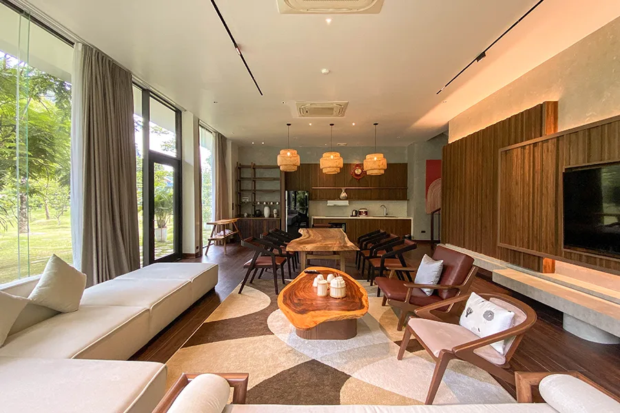 Diện tích: 175 – 190M2 Khách tối đa: 16 người lớn + 8 trẻ em View hướng vườn + Hướng núi