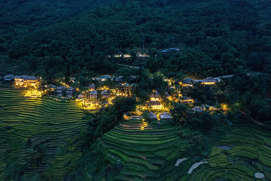 Ẩn mình giữa thung lũng Pù Luông xanh ngắt, nơi những triền ruộng bậc thang nối tiếp nhau uốn lượn giữa núi rừng, Pù Luông Retreat hiện lên như một giấc mơ yên bình – nơi thời gian dường như ngừng lại để nhường chỗ cho thanh âm của gió, của suối, và tiếng thì thầm của thiên nhiên.