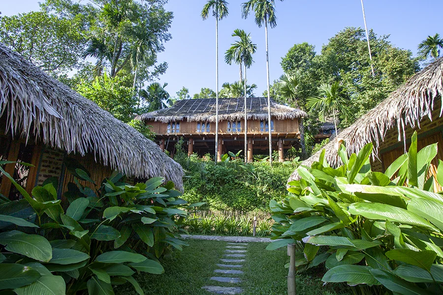 Chỉ cách Hà Nội khoảng 160km, nằm trong Khu bảo tồn thiên nhiên Pù Luông (huyện Bá Thước, tỉnh Thanh Hóa), khu nghỉ dưỡng là điểm đến lý tưởng cho những ai muốn “trốn” khỏi nhịp sống ồn ã nơi phố thị. Đường đến Pù Luông Retreat là hành trình đầy cảm xúc, khi bạn đi qua những con đèo quanh co, những bản làng của người Thái mộc mạc, những cánh đồng lúa trải dài như tấm thảm ngọc bích giữa núi non hùng vĩ. Pù Luông Retreat không xa hoa lộng lẫy như những khu nghỉ dưỡng ven biển, nhưng lại mang vẻ đẹp nguyên sơ và quyến rũ riêng. Toàn bộ khuôn viên được thiết kế theo lối kiến trúc thân thiện với thiên nhiên, sử dụng vật liệu địa phương như tre, nứa, gỗ và đá tự nhiên. Từng căn bungalow hướng thẳng ra thung lũng, mở toang trước mắt là bức tranh thiên nhiên kỳ vĩ – nơi bình minh len qua kẽ núi, hoàng hôn nhẹ buông trên những nếp nhà sàn ẩn hiện giữa khói lam chiều. Điều khiến du khách say mê nhất ở Pù Luông Retreat chính là hồ bơi vô cực – nơi bạn có thể ngâm mình trong làn nước trong veo, phóng tầm mắt ra cánh đồng lúa bậc thang mênh mông và để tâm hồn tan vào thiên nhiên. Khi hoàng hôn buông xuống, ánh nắng cuối ngày phản chiếu trên mặt nước lấp lánh như dát vàng, tạo nên khung cảnh đẹp đến nao lòng. Không chỉ là nơi nghỉ dưỡng, Pù Luông Retreat còn là hành trình để bạn chạm vào nhịp sống vùng cao: dạo quanh bản Đôn, bản Hủa – những ngôi làng yên bình của người Thái trắng, thưởng thức rượu cần, cơm lam, cá suối nướng; hay trekking qua những con đường mòn men theo suối, khám phá thác Hiêu, hang Kho Mường – kiệt tác thiên nhiên ẩn mình giữa núi rừng. Ẩm thực tại Pù Luông Retreat là sự kết hợp hài hòa giữa món ăn dân tộc và ẩm thực Việt hiện đại. Từ miếng gà đồi nướng than thơm lừng, rau rừng xào tỏi đến món cá suối giòn tan – tất cả đều được chế biến từ nguyên liệu tươi ngon của địa phương, mang hương vị đậm đà, chân chất như chính con người nơi đây. Buổi tối ở Pù Luông Retreat, bạn sẽ thấy bầu trời đầy sao trải dài như tấm lụa, nghe tiếng dế kêu rả rích, và cảm nhận sự bình yên tuyệt đối – thứ mà giữa guồng quay cuộc sống hiện đại, đôi khi ta quên mất nó vẫn tồn tại. Pù Luông Retreat không chỉ là nơi để nghỉ, mà là nơi để sống chậm – để lắng nghe chính mình. Giữa mây trời, núi rừng và hương lúa mới, bạn sẽ thấy lòng mình được gột rửa, nhẹ nhàng và an nhiên đến lạ.