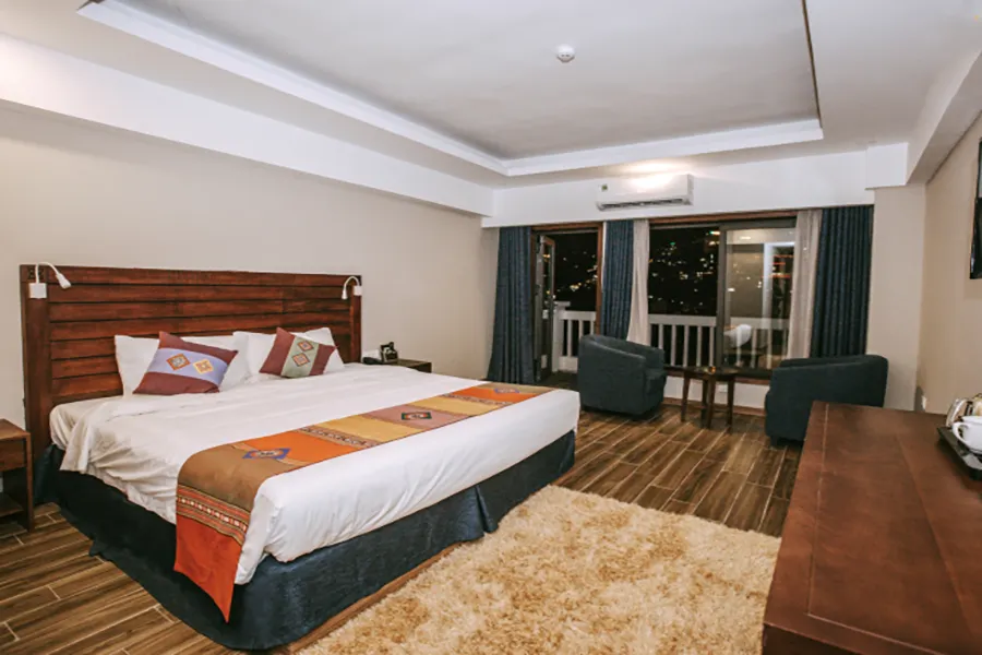 Ngoài các tiện nghi và nội thất hiện đại, mỗi Phòng Deluxe còn có ban công riêng lãng mạn nhìn ra cảnh quan tuyệt vời của núi cao và thung lũng sân thượng. Diện tích: 35m2 Giường ngủ: Twin/Double/Triple Khách tối đa: 02 người lớn + 01 bé dưới 6 tuổi View: Khung cảnh Fansipan …