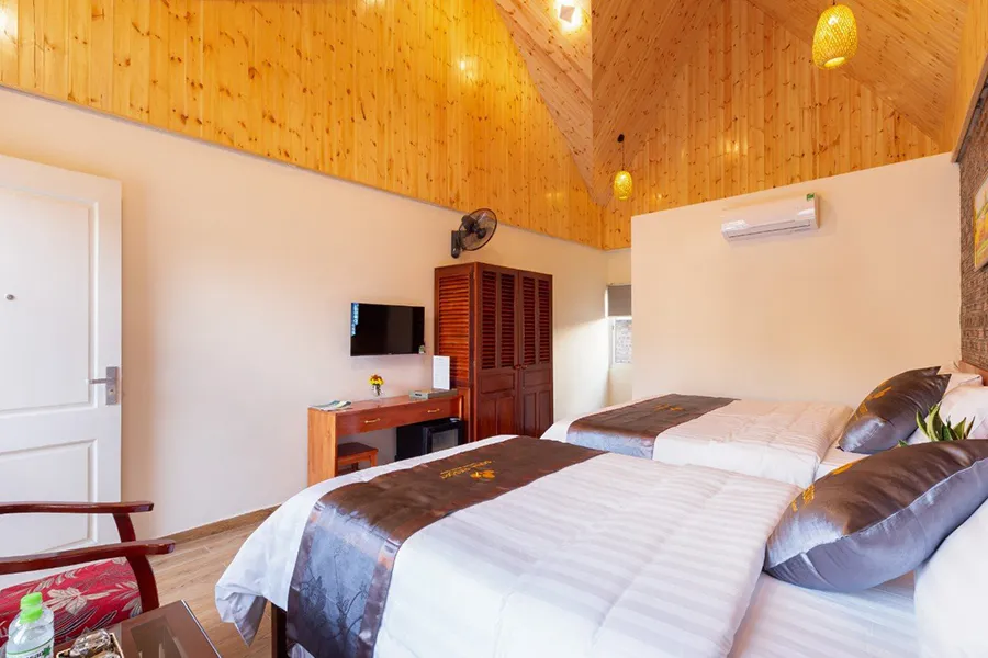 Giữa không gian núi non hùng vĩ và đồng lúa trải dài tới tận chân trời, Sona Resort Ninh Bình hiện lên như một ốc đảo bình yên dành cho những ai đang tìm kiếm sự an nhiên, thư thái trong cuộc sống vội vã. Nằm ở vị trí thuận lợi thuộc huyện Hoa Lư – vùng đất hội tụ tinh hoa văn hóa, lịch sử, khu nghỉ dưỡng là điểm dừng chân lý tưởng để du khách khám phá các danh thắng nổi tiếng như Tràng An, Tam Cốc – Bích Động, Hang Múa, cố đô Hoa Lư, Tuyệt Tịnh Cốc… Không gian nghỉ dưỡng xanh mát Ngay khi đặt chân đến Sona Resort, du khách sẽ cảm nhận rõ bầu không khí trong lành, với gió mát từ sông núi thổi về và tiếng chim ríu rít len lỏi qua những tán cây xanh. Toàn bộ không gian được thiết kế theo phong cách gần gũi thiên nhiên, kết hợp giữa kiến trúc truyền thống Việt Nam và nét hiện đại tinh tế. Những mái ngói đỏ san sát, tường đá thô mộc và lối đi lát sỏi tạo nên cảm giác ấm cúng, thân thuộc. Hệ thống phòng nghỉ đa dạng & tiện nghi Khu nghỉ dưỡng sở hữu hệ thống phòng nghỉ đa dạng: từ phòng tiêu chuẩn cho cặp đôi, phòng gia đình rộng rãi, cho đến những căn villa riêng tư với view hồ hoặc núi. Mỗi phòng đều được trang bị đầy đủ tiện nghi như TV màn hình phẳng, minibar, điều hòa, phòng tắm riêng sang trọng cùng wifi tốc độ cao. Nội thất gỗ kết hợp ánh sáng vàng dịu mang lại sự ấm áp ngay từ cái nhìn đầu tiên. Hồ bơi ngoài trời giữa thiên nhiên Một trong những điểm nhấn của Sona Resort chính là hồ bơi ngoài trời rộng lớn, nằm giữa khuôn viên xanh mát. Ngâm mình dưới làn nước trong xanh, ngước nhìn bầu trời thoáng đãng và núi non trùng điệp, bạn sẽ có cảm giác như thời gian dịu lại, mọi muộn phiền tan biến. Kế bên hồ bơi là khu vực lounge ngoài trời, nơi du khách có thể thưởng thức cocktail, nước ép tươi mát trong những buổi chiều đầy nắng. Ẩm thực đậm dấu ấn địa phương Ẩm thực tại Sona Resort là hành trình trải nghiệm hương vị địa phương độc đáo. Nhà hàng phục vụ đặc sản Ninh Bình như dê núi nướng, cơm cháy, cá sông kho riềng… cùng nhiều lựa chọn món Á – Âu hấp dẫn. Tất cả đều được chuẩn bị từ nguyên liệu tươi ngon, đảm bảo chất lượng, mang đến hương vị chuẩn mộc nhưng vẫn tinh tế. Tiện ích giải trí & trải nghiệm Đối với những ai yêu vận động nhẹ nhàng, resort có khu vui chơi trẻ em, phòng tập gym, spa, xe đạp dạo quanh làng…, phù hợp cho cả gia đình. Du khách cũng có thể đặt tour trekking, chèo thuyền hoặc khám phá hang động ngay tại quầy lễ tân với dịch vụ hỗ trợ tận tâm. Điều đáng nhớ nhất khi lưu trú tại Sona Resort chính là sự hiếu khách. Tập thể nhân viên luôn niềm nở, sẵn sàng đáp ứng mọi nhu cầu, mang đến cảm giác thân thiện và ấm áp như trở về nhà. Với tính chuyên nghiệp cao, dịch vụ nhanh chóng, chăm sóc tận tình, resort phù hợp cho cả nghỉ dưỡng dài ngày lẫn các buổi hội họp, sự kiện nhỏ. Khoảnh khắc đêm yên bình Buổi tối ở đây, khi ánh đèn vàng xuyên qua hàng cây, tiếng gió khe khẽ lùa qua mái ngói, mặt hồ tĩnh lặng phản chiếu trời sao, du khách sẽ cảm nhận rõ vẻ đẹp tĩnh lặng rất riêng của vùng cố đô. Sona Resort Ninh Bình không chỉ là nơi để lưu trú; đó còn là nơi để tìm lại nhịp thở chậm rãi, để lắng nghe thiên nhiên và để tận hưởng khoảnh khắc bình yên mà đôi khi ta đánh mất trong vòng xoáy cuộc sống.