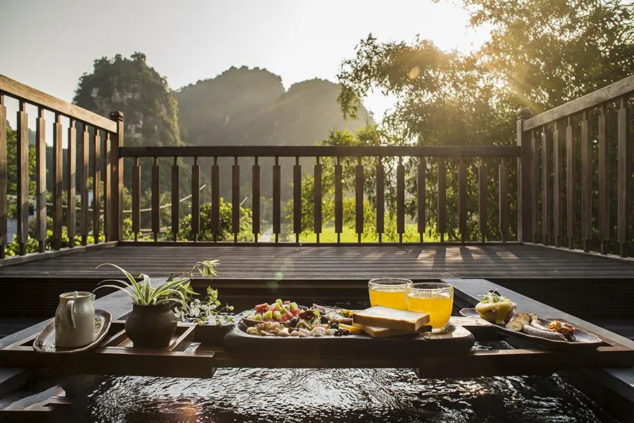 Phòng Mountain Veranda Chamber tự hào sở hữu tầm nhìn ngoạn mục ra những cánh đồng lúa vàng ươm và những đỉnh núi đá vôi đặc trưng của Ninh Bình. Từ vị trí cao trên khuôn viên Tam Cốc, phòng mang đến một góc nhìn mới mẻ, nơi bạn có thể tận hưởng những sắc …